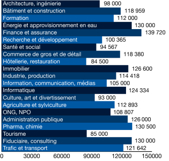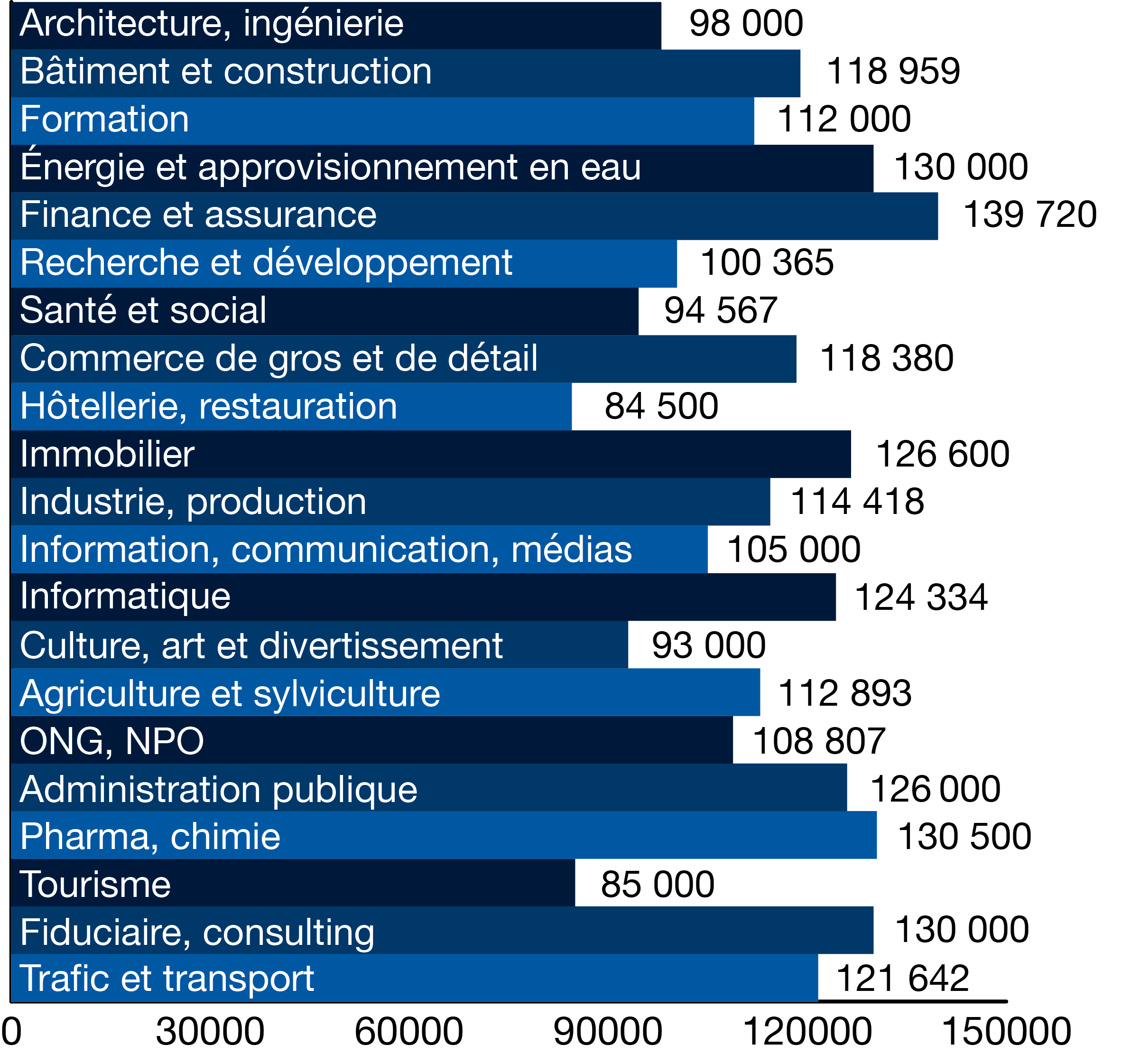 Pour des raisons de protection des données, seuls les profils de salaires comportant dix enregistrements ou plus sont affichés. Lorsque les données disponibles sont peu nombreuses - en général moins de trente - la moyenne et la médiane doivent être interprétées avec prudence, car elles sont particulièrement influencées par les valeurs extrêmes.